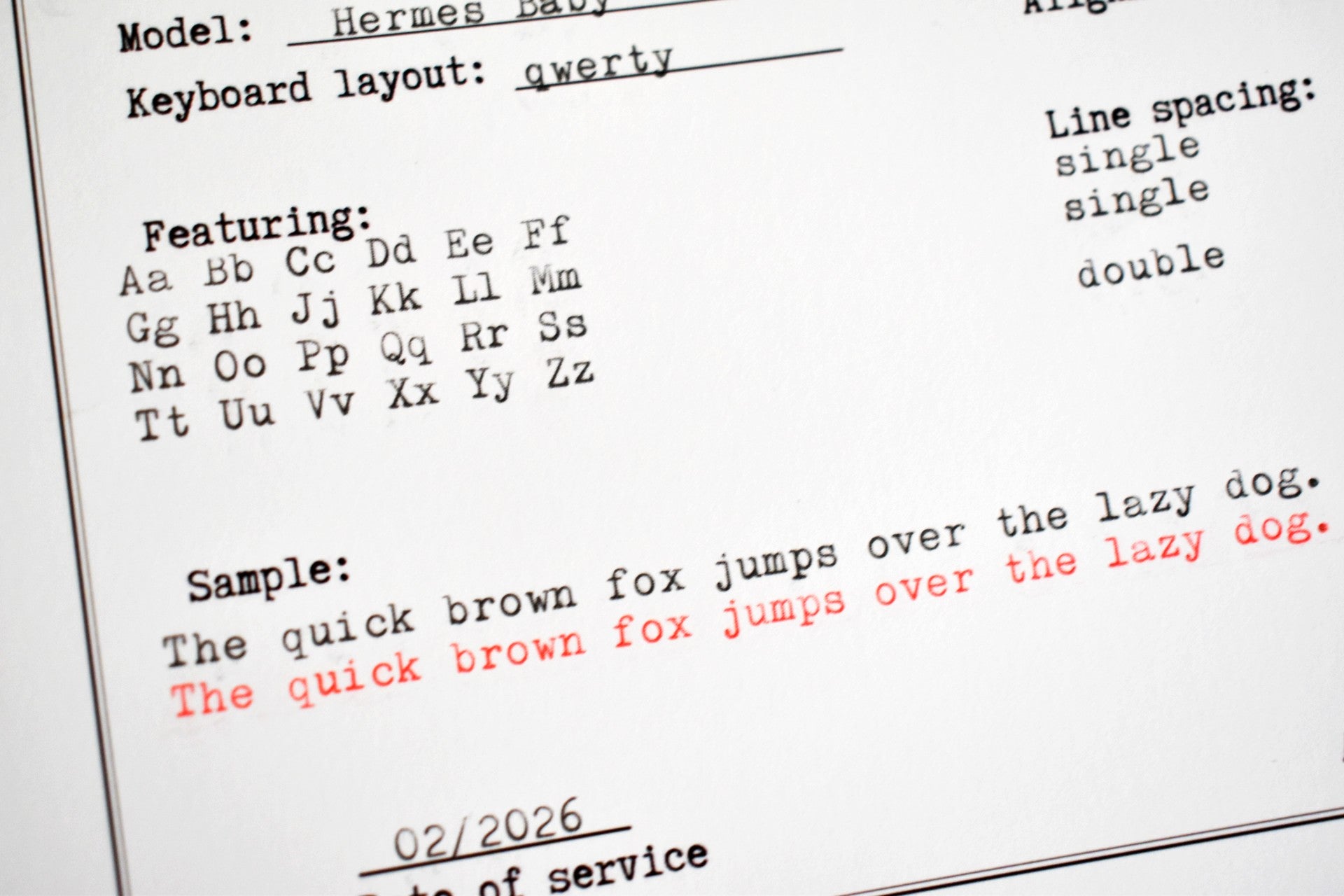 All our typewriters are delivered to you ready to start typing. All machines have an installed new ink ribbon which should last at least 500 A4 pages.