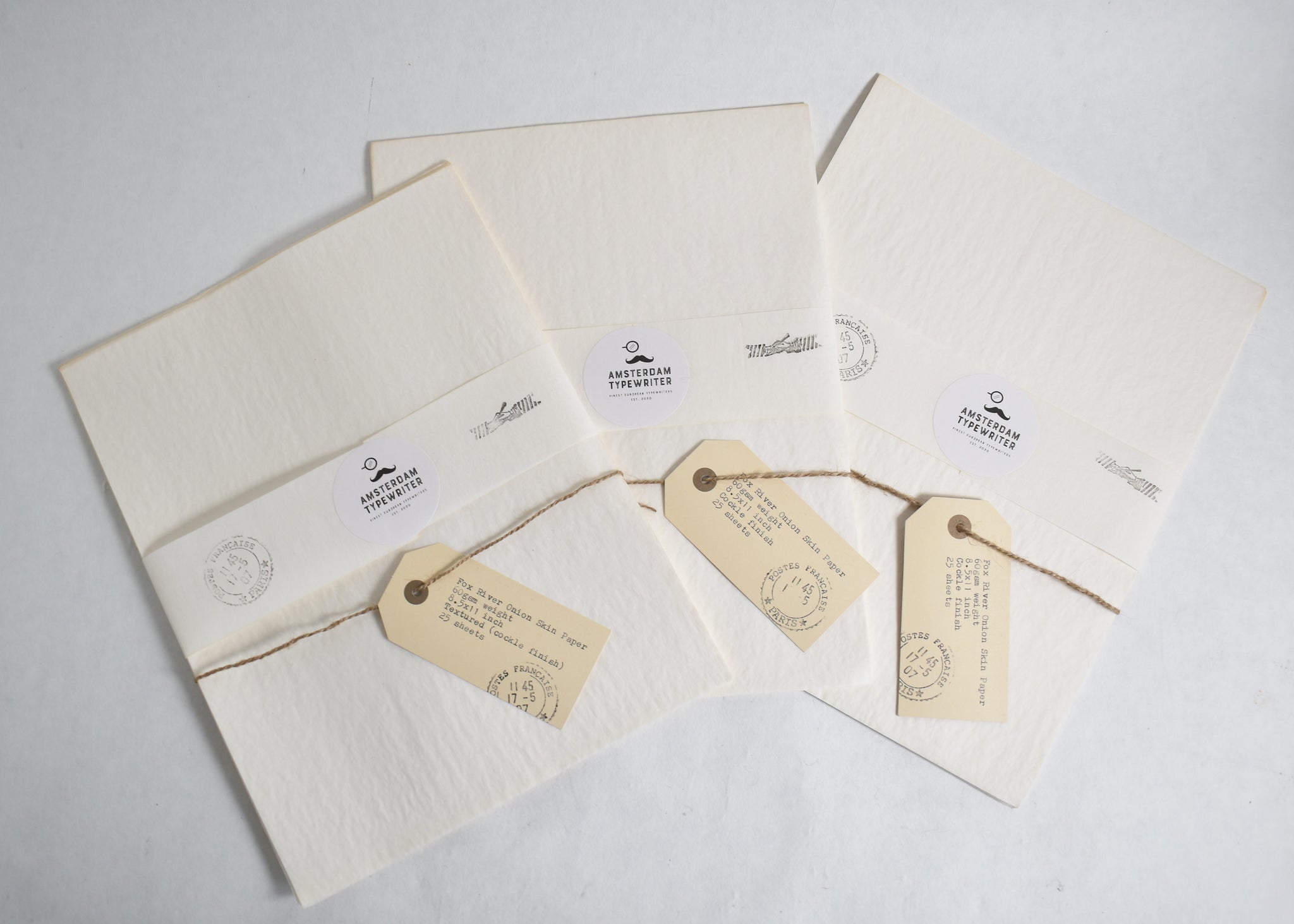 The texture is slightly rough but pleasant to the touch. The paper features a Fox River original watermark.